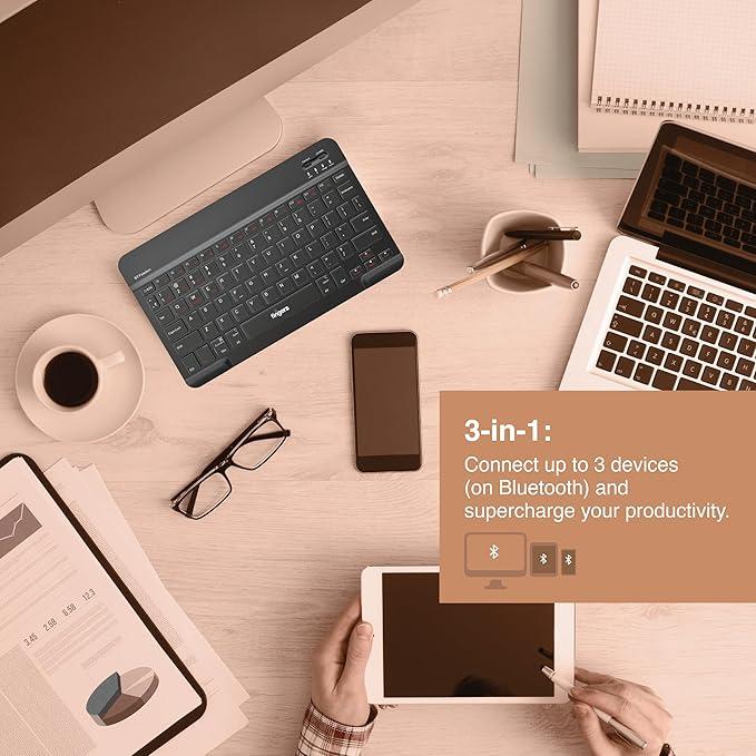 FINGERS BT-Freedom Bluetooth Mini Keyboard (Type-C Rechargeable with 30-Day worktime, X-Type Scissor Keys) - Jet Black
