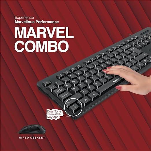 FINGERS MarvelCombo Wired Deskset (USB Wired Keyboard & Mouse Set | 12 Quick Soft-Touch Media Controls for Instant Access | Rupee Key | Windows®, macOS, Linux Compatible)