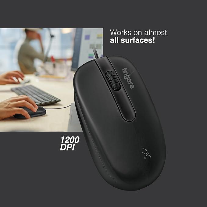 FINGERS MasterHit USB Wired PC Mouse (Advanced Optical Technology, 1200 DPI, Ambidextrous, Plug-n-Play, Windows?, macOS, Linux & Chrome OS)