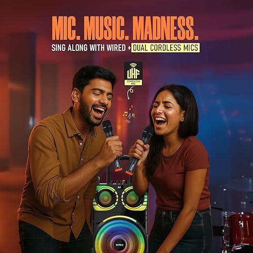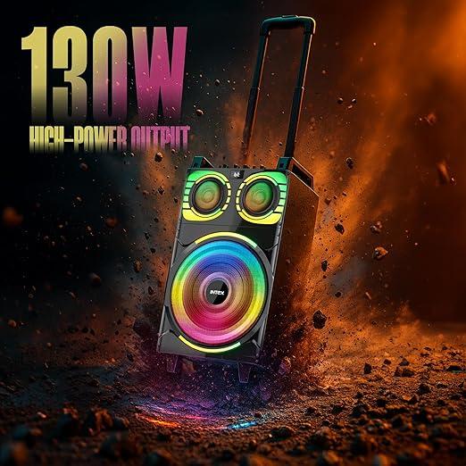Intex Thriller 1300 Bluetooth Trolley Speaker 130W with Dual Wireless Mic, RGB Lights, USB/SD/AUX/FM, Remote Control, Rechargeable Battery, Portable Party Speaker with Handle & Wheels for Outdoor Use